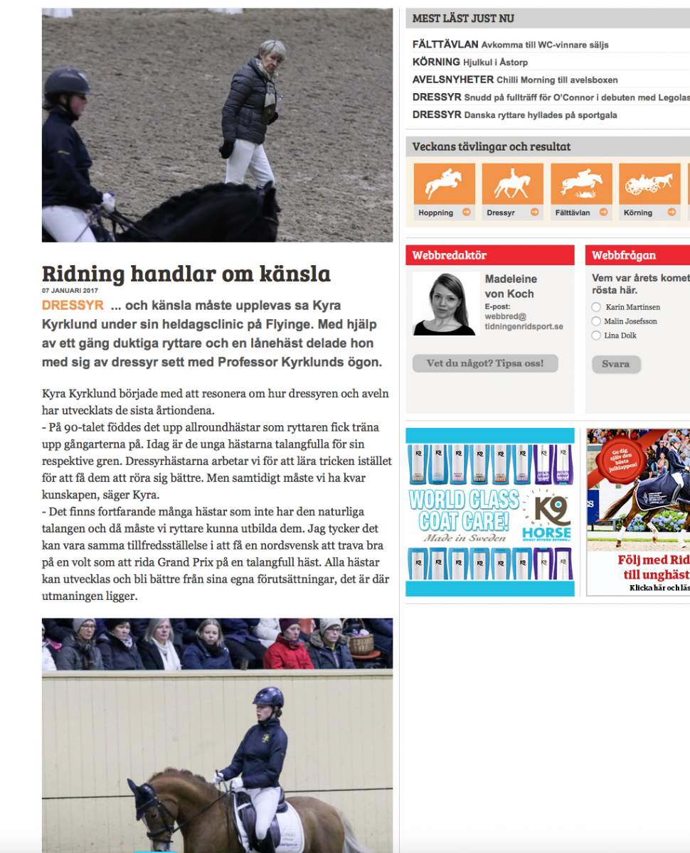 Det blev en mycket lyckat och uppskattat clinic och här är länk till utförliga och fina artiklar från Tidningen Ridsport och 2 från Hippson Hippson