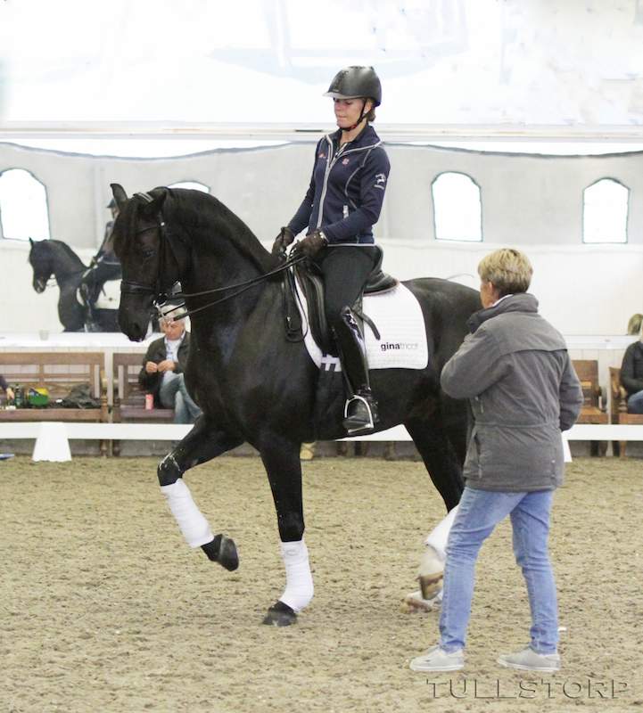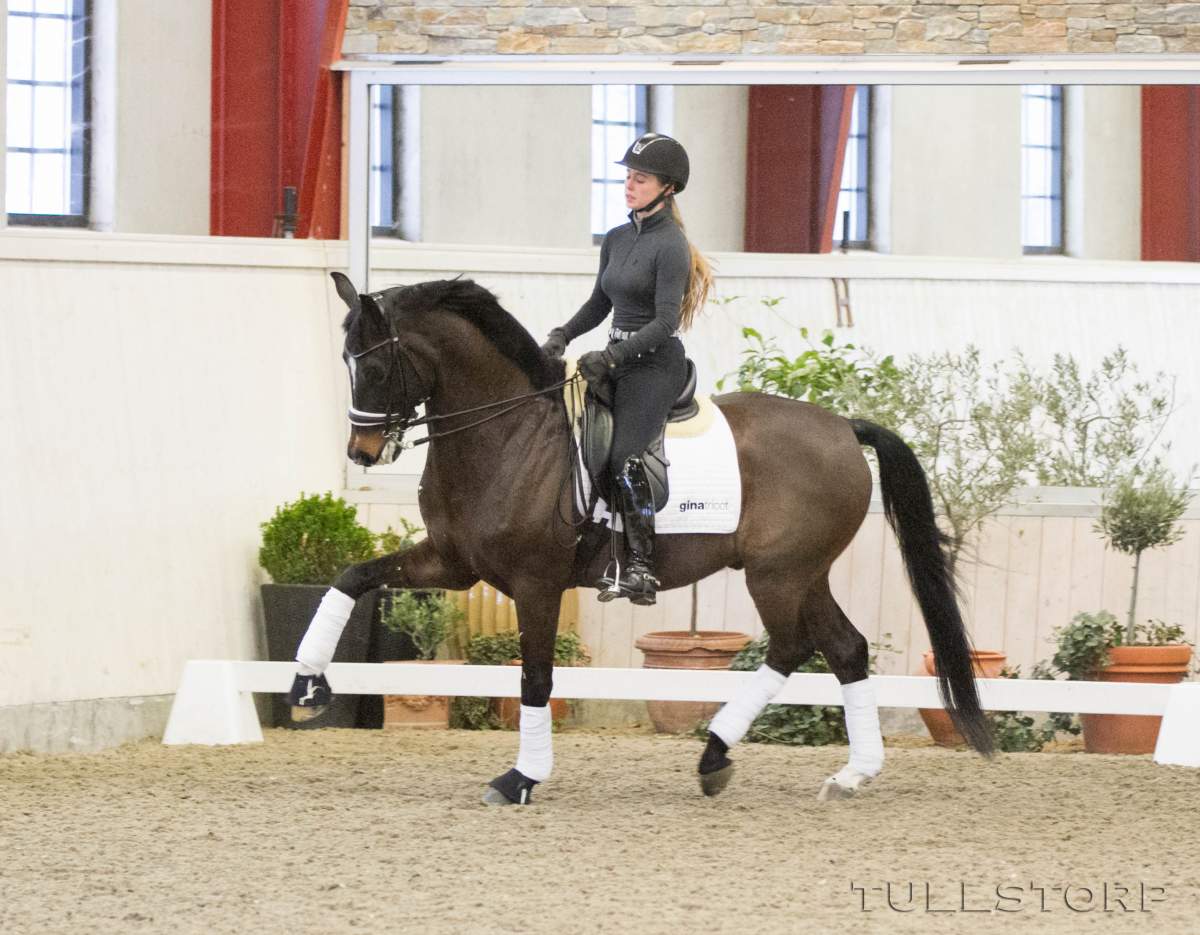 I torsdagens klass för unga hästar var Plantskole kollegan Mikaela Alderin-Danielsson först utanför placering på Saga N ( Sir Donnerhall x Stanford) med 74,60%.