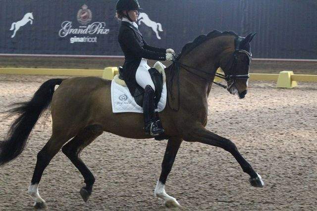 I Grand Prix'en kom Charlotte Haid-Bondergaard 2:a med andra hästen Roberto des Frettes (Carinho Des Noes x Boulou Des Frettes) med 68,033%.